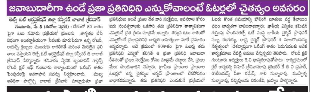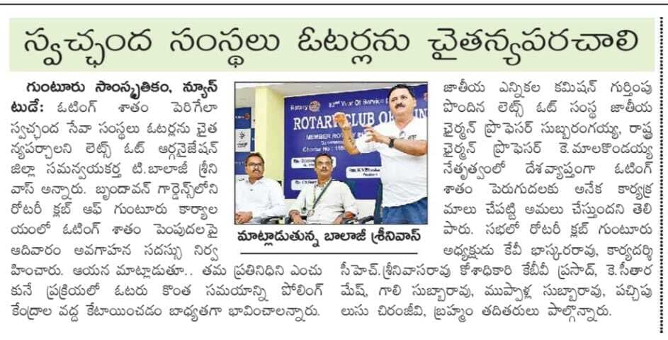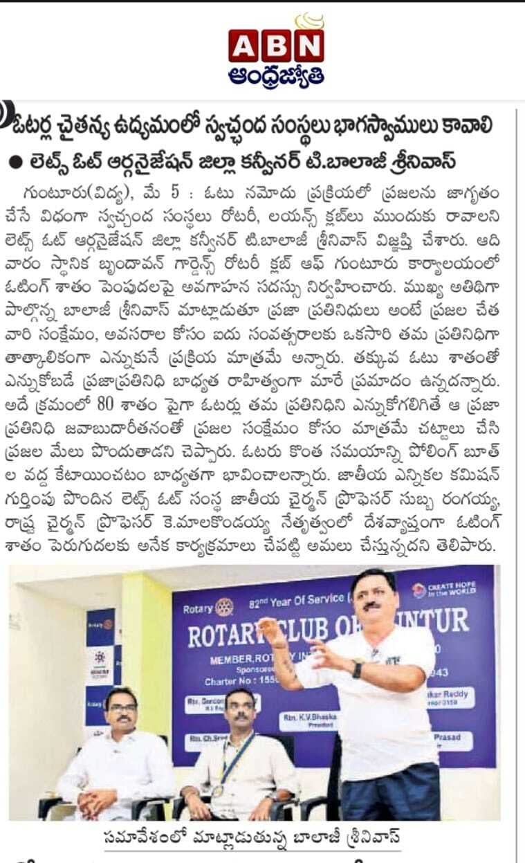 LetsVote Awareness Program at Rotary Club Of Guntur News Papers