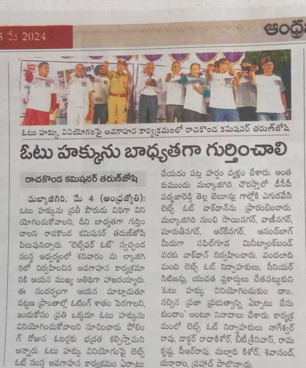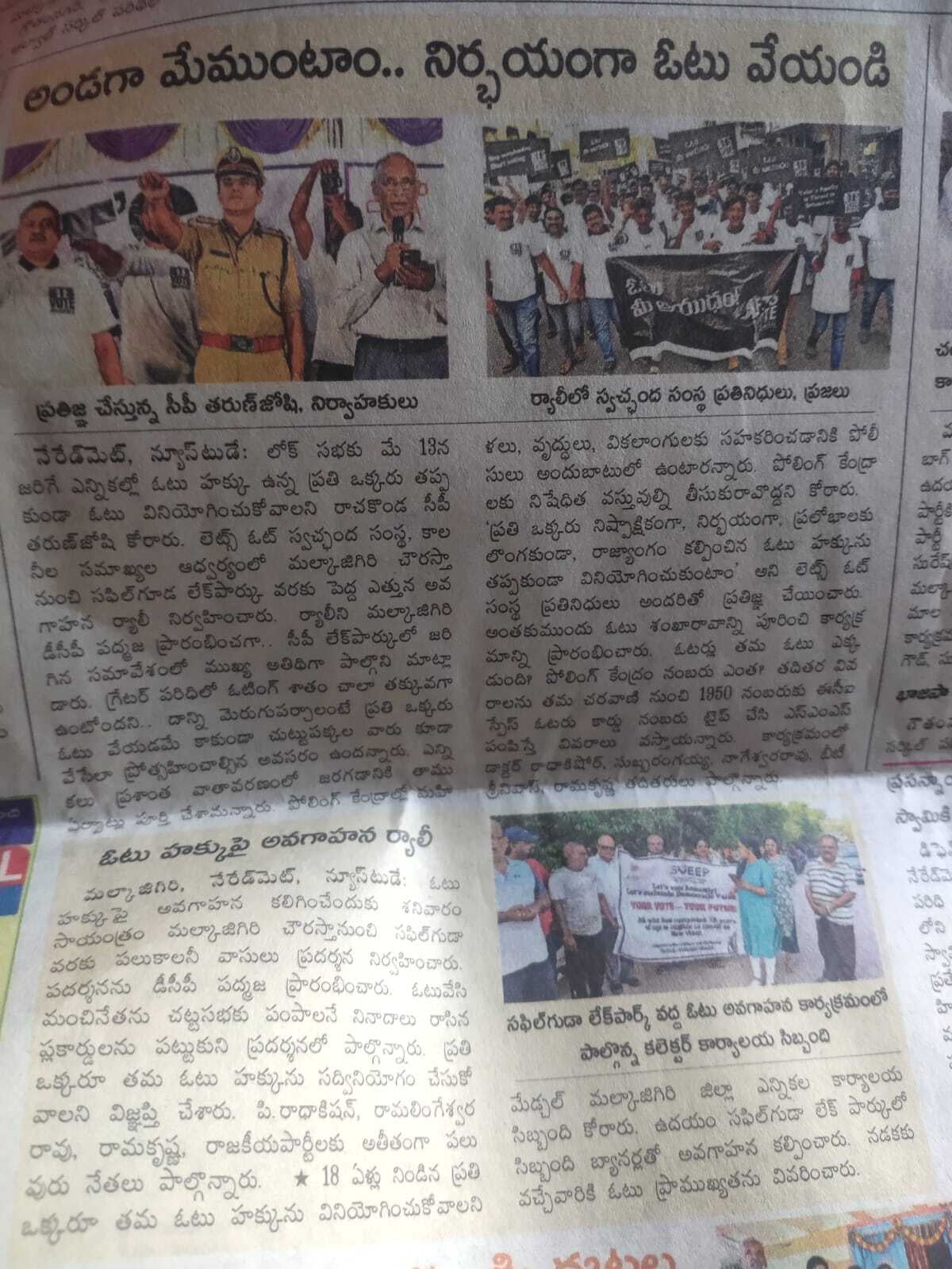 LetsVote Walkathon in Malkajgiri News Papers